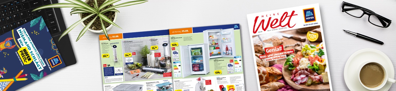 Hofer Angebote und Aktuelle Prospekte. Auf 24 Seiten finden sich aktuelle Aktionen mit denen ihr bares Geld spart. In über 500 Filialen österreichweit zaubert der Lebensmittel-Gigant seinen Kunden täglich ein Lächeln aufs Gesicht denn nirgends sonst lässt sich so günstig einkaufen.